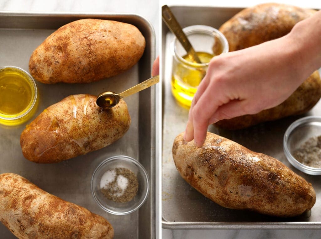 Next, rub each potato with olive oil and then generously season with salt and pepper.